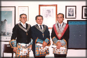 3 - Em 11/10/1985, os Grãos Mestres da Grande Loja de Santa Catarina, José Abelardo Lunardelli, e do Grande Oriente do Estado de Santa Catarina, Samuel Fonseca, em coroamento ao êxito do primeiro ciclo da Operação Triângulo, foram recebidos como Membros Honorários da Loja Alferes Tiradentes.