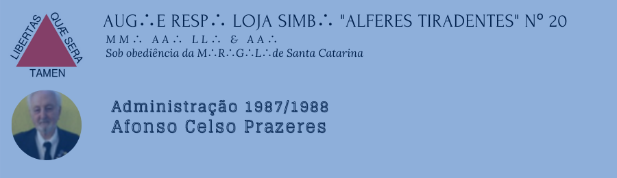 Em 03/12/1987, o Irmão Vidal José Vieira foi sagrado Garante de Paz e Amizade na Loja Universo Nº 43 para a Loja Alferes Tiradentes Nº 20.