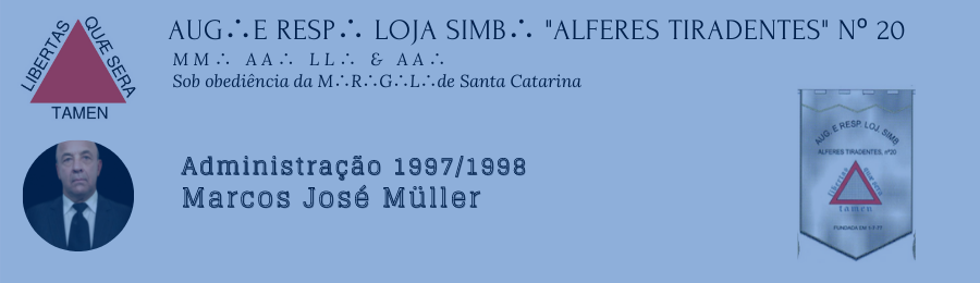 01) 12/12/1997 Sessão Magna de Instalação do Ir.·. Marcos José Müller no Templo da GLSC na Av. Hercílio Luz, com a posse do Venerável Mestre da ARLS.·. “Rei Davi” No 58 Ir.·. Sílvio Serafim da Luz