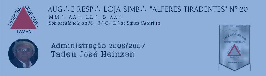 5) Em 29/09/2006 a Loja "Alferes Tiradentes" realizou uma Sessão Magna de Iniciação conjunta com a Loja "Templários da Nova Era" nº 91, com a finalização do ato iniciático executado pelo Venerável da Loja Alferes Tiradentes.