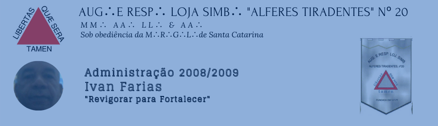 2) Em 20/06/2008, Sessão de Posse da Administração - gestão 2008/2009 - "Revigorar para Fortalecer", tendo como 1º Vigilante o Ir.·. Sigfrido Maus e 2º Vigilante o Ir.·. Luiz Antônio Vieira Goulart.