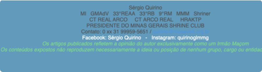 Duas décadas de compartilhamento do que aprendi com o único propósito de ofertar às Lojas material para o QUARTO DE HORA DE ESTUDO, ATIVIDADE OBRIGATÓRIA DE UMA LOJA MAÇÔNICA, e também uma salutar provocação dominical aos amados Irmãos. São artigos curtos e objetivos, a fim de dar espaço à pesquisa, entre o pouco que sei e o muito que desejo que os Irmãos se aprofundem sobre os temas.