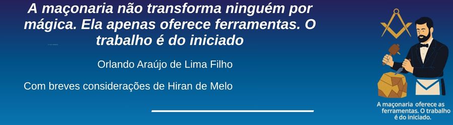“A maçonaria não transforma ninguém por mágica. Ela apenas oferece ferramentas. O trabalho é do iniciado”. Com essa frase, Orlando Araújo de Lima Filho nos convida a olhar para a jornada maçônica como um chamado à responsabilidade pessoal, à liberdade interior e à construção consciente de si mesmo. Essa visão ressoa tanto com a filosofia existencial de Martin Heidegger quanto com a espiritualidade simbólica de Jean-Yves Leloup, ambos atentos ao mistério do ser em processo.